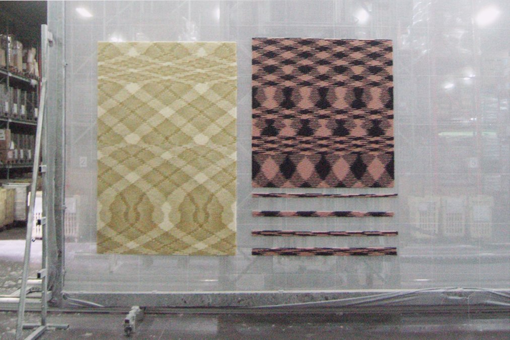 Diane Steverlynck had been working for several years on the industrial development of yarns with great bi-colored rhythms for the realization of rugs with fluctuating designs. With the help of a programmer, she also set up an open source computer preview system for this graphical phenomena. Chevalier Masson, for their part, had been focusing for some time on the graphic interactions between thread and surface, in an artisanal or semi-industrial way. Since 2014, they associated the respective stages of their work, to self-publish blankets and rugs under the label laend.