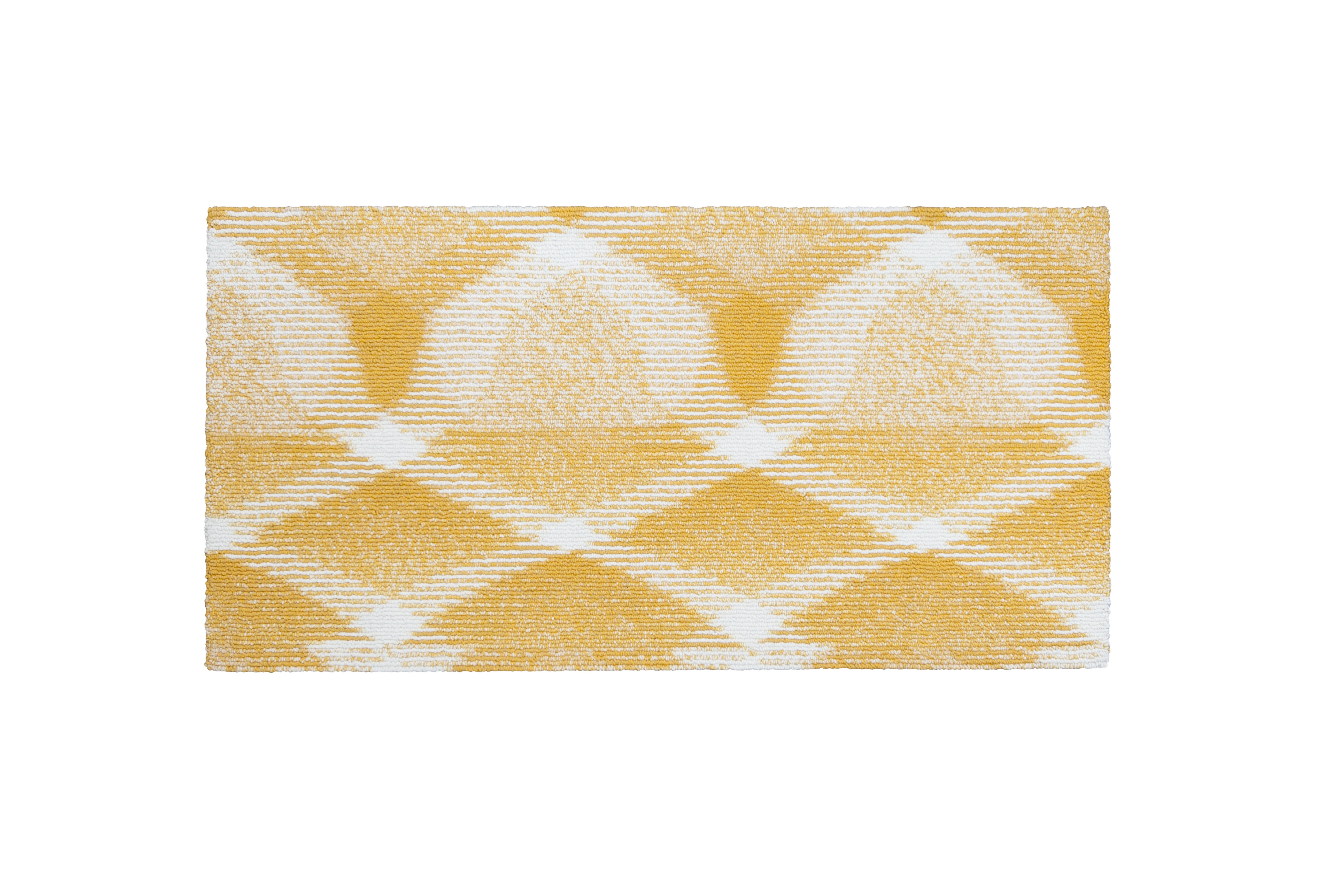 Resonance launched in 2016, Echo, Flow and Court Circuit rugs launched in 2017, are soft rugs with moving graphic rhythms. Different patterned and colored yarns interfere to create a vibrant landscape with crossed or linear graphic waves. The production process create graphic fluctuations from one piece to another, each tufted line generates a slightly different thread consumption allowing a variation of the drawing and bringing a uniqueness to each pièce, revealing how the surface is literally drawn by the yarn itself.