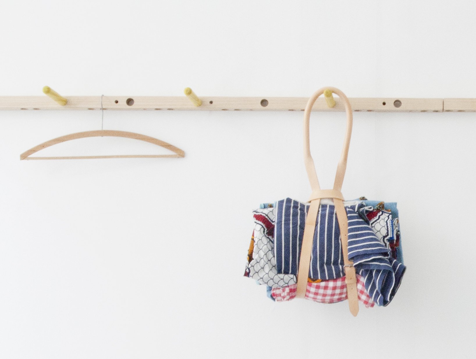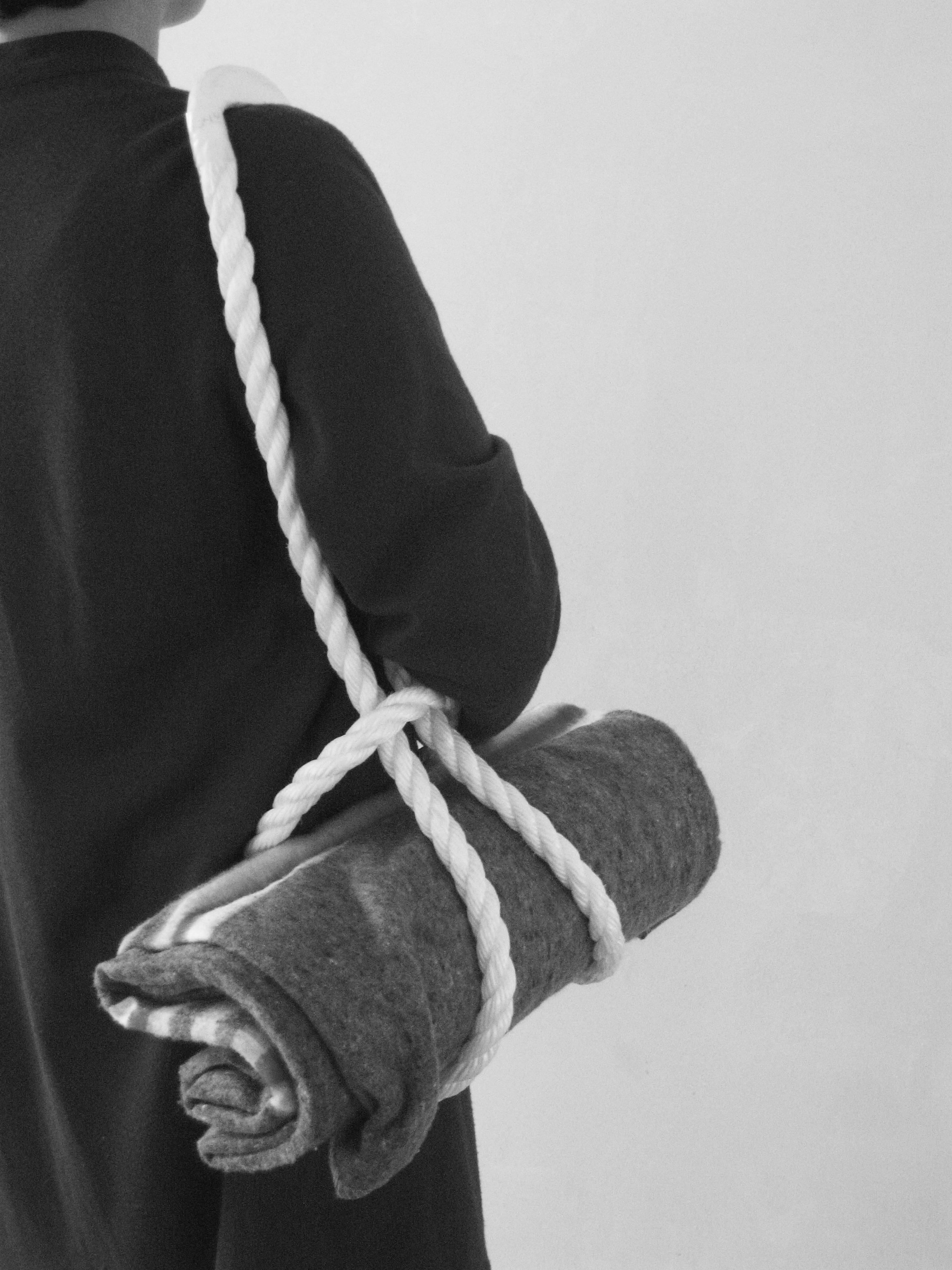 A handle that extends into a strap, provided at its end with an adaptable belt buckle. A tribute to the action of transporting, this simple device allows many typologies. The element "handle" draws and determines the use and comfort of the object.