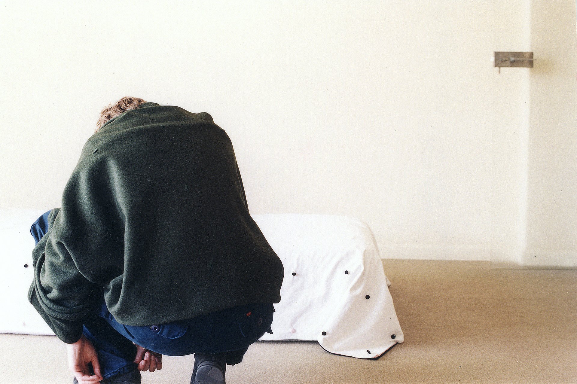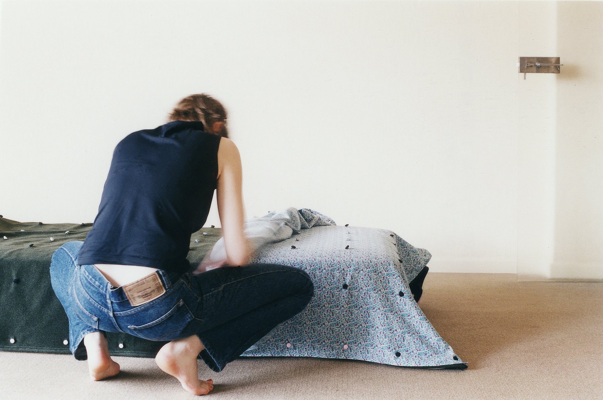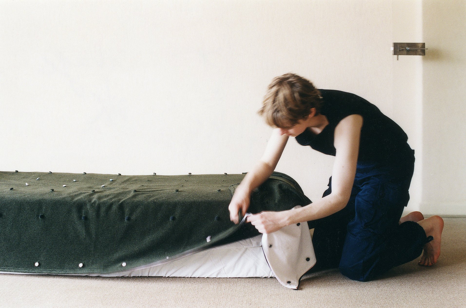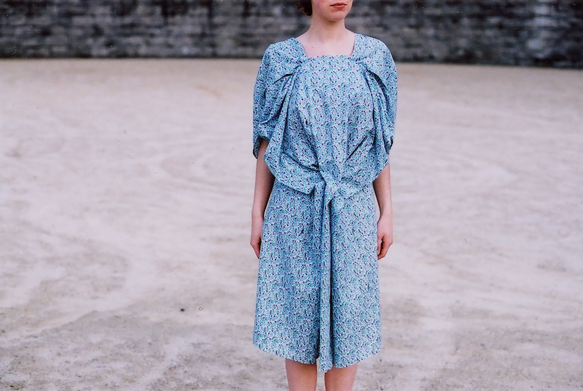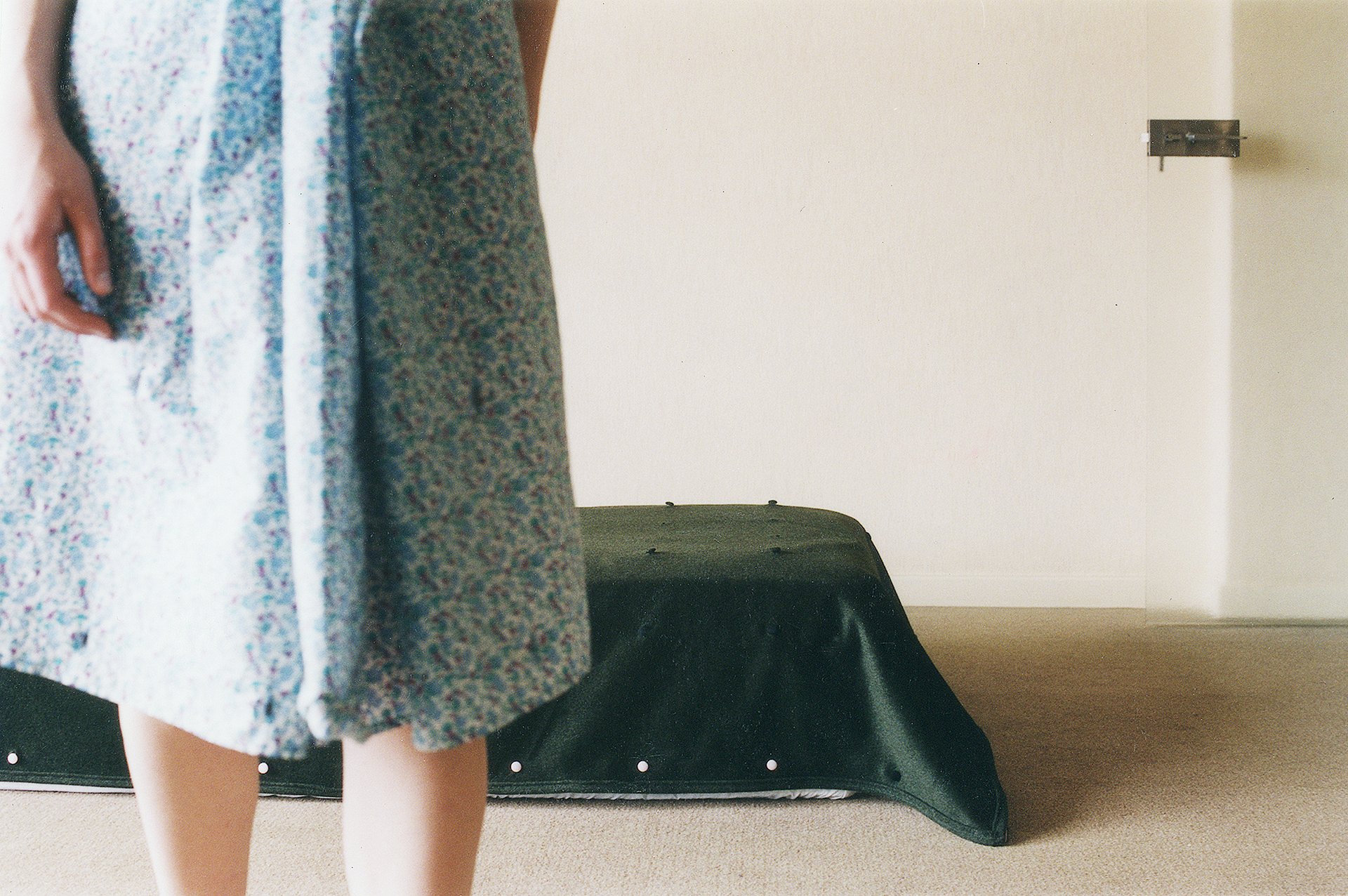 The self-couture project is composed of layers of different materials chosen for their specific character, ranging from bed linen fabrics to those used for clothing. (wolen Loden fabric, white linen, coloured plain-woven cotton, flower patterns, ...)