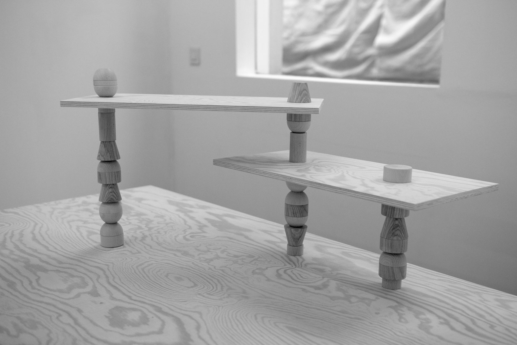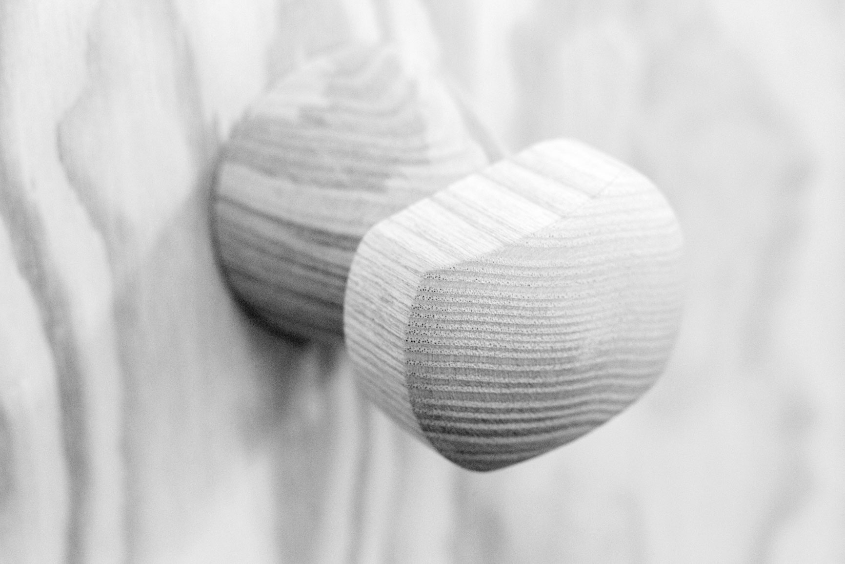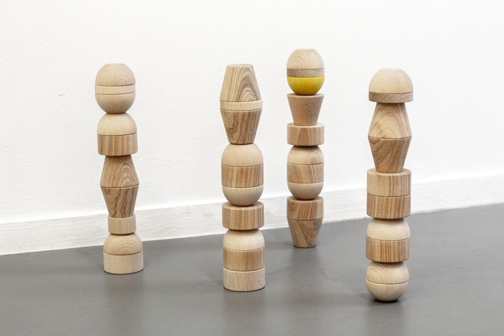 The wood-screw parts stem from further reflection on modular systems and their reductive spirit that aims at the highest employability with a minimum number of parts. Observing these principles of modularity and grid in relation to the designs and uses they produce, we learned that just like modularity led us to the idea of efficiency, the grid drives us to reflect its uniform, repetitive and practical nature. This awareness incited us to create parts that have a playful potential, unsystematic patterns and sensory value. Produced by woodturning, the parts reflect the variability of shapes and typology of daily object generated by this technique.