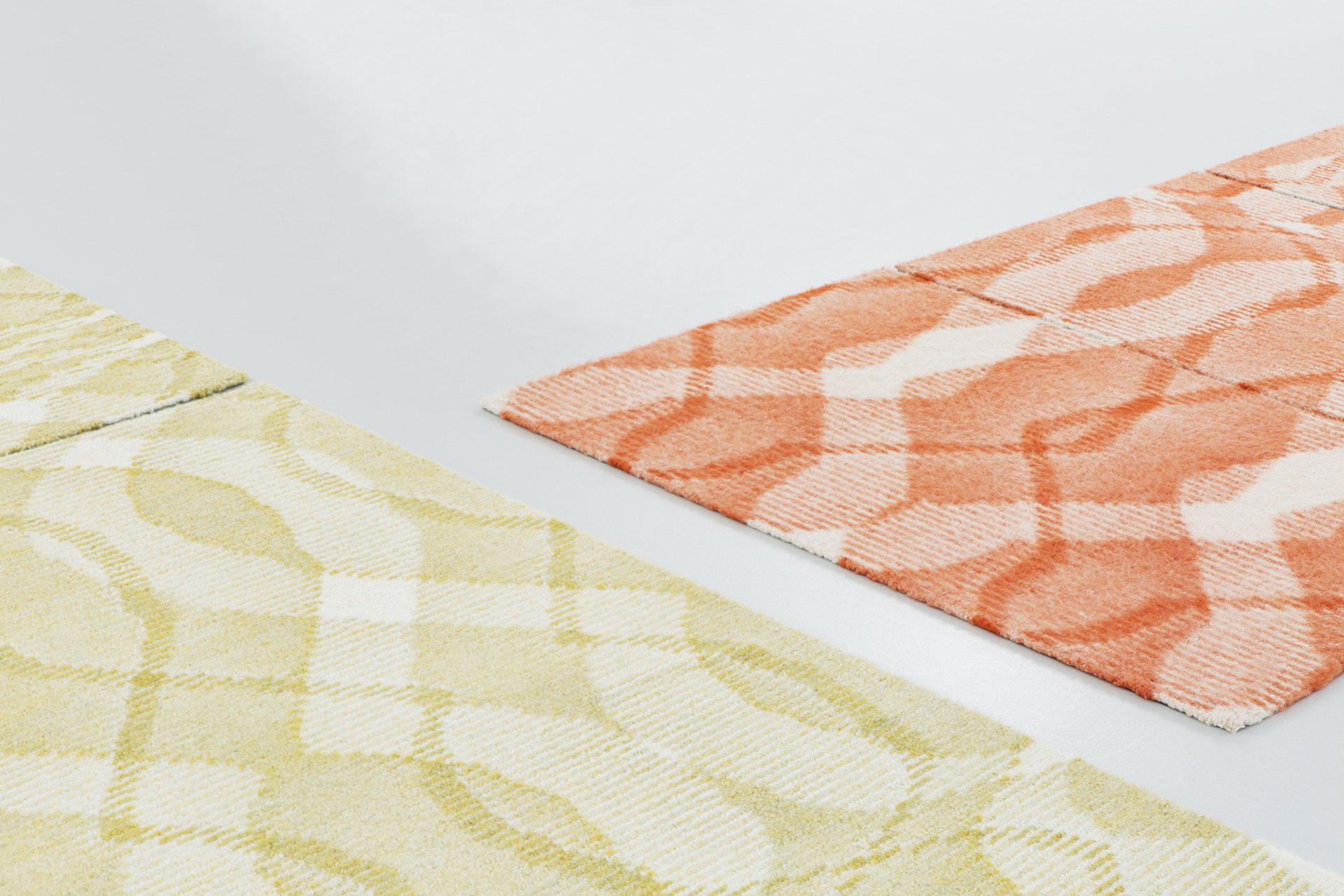 The developed production process creates graphic fluctuations from one piece to another. The slightly different thread consumption of each tufted line allows for variation in the pattern, making each piece unique and revealing how the surface is literally drawn by the yarn itself.