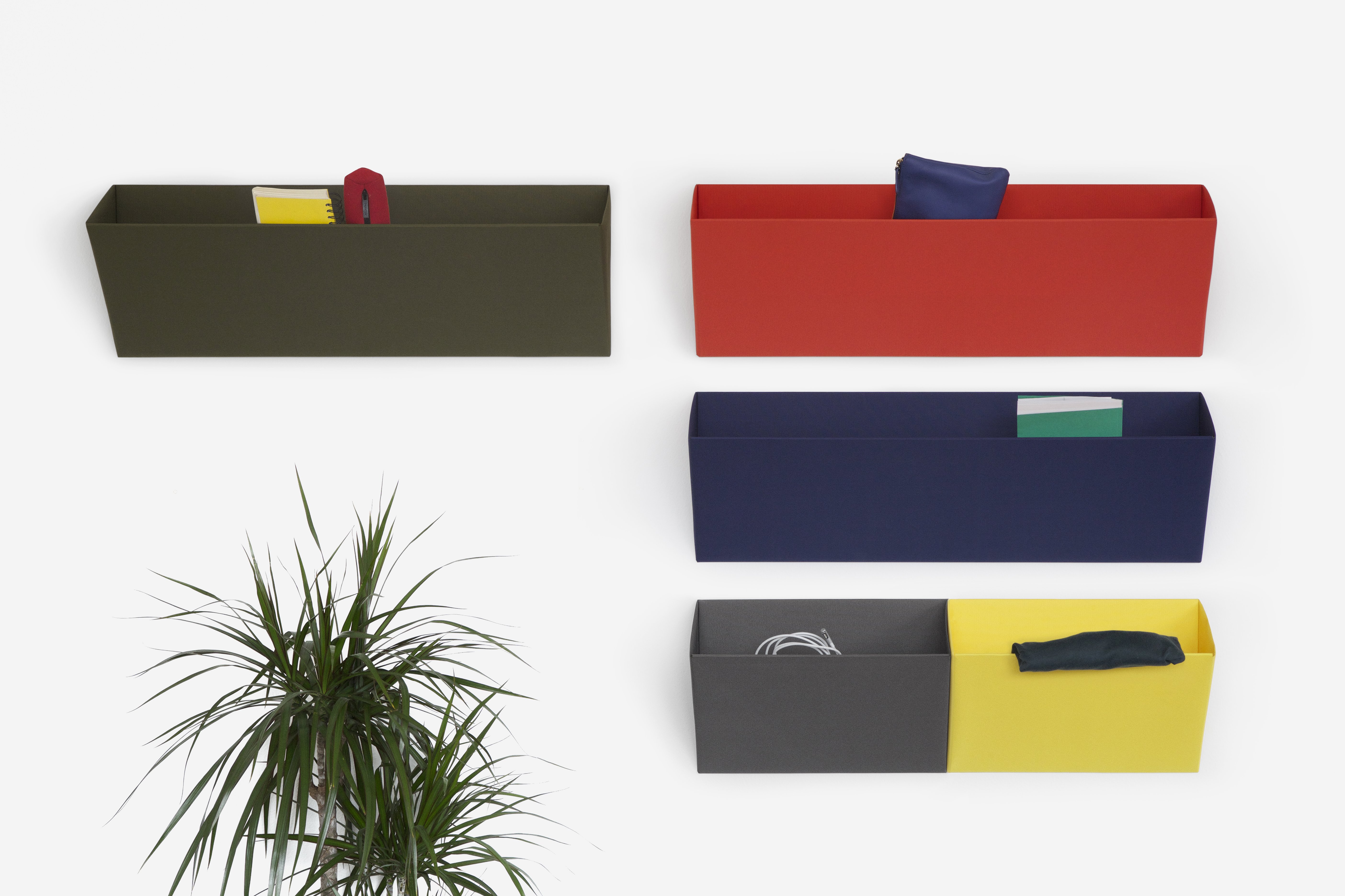 Leaning is a new approach to traditional shelving: an easy-to-mount 'wall-pocket', an elegant and convenient storage solution