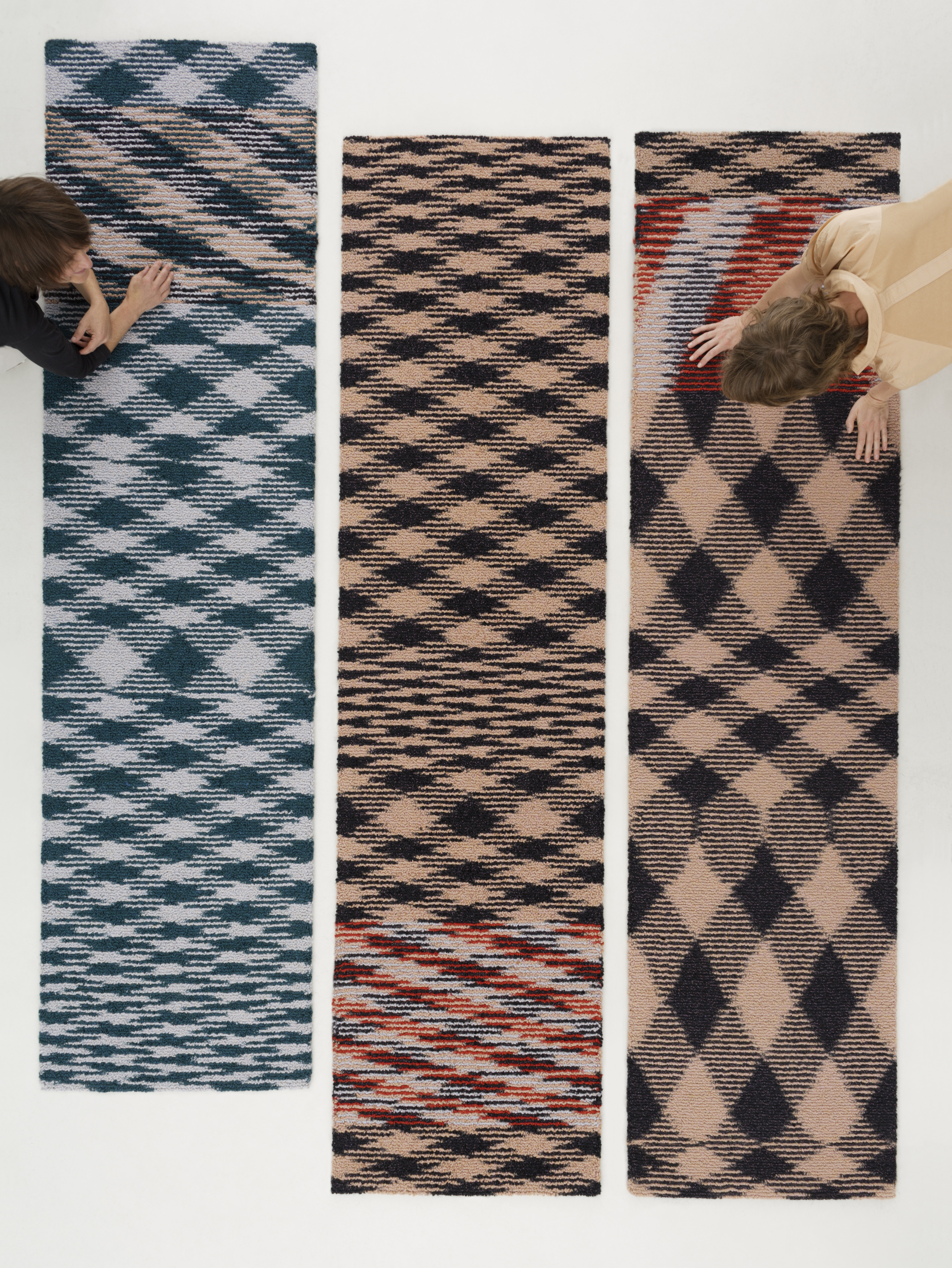 The rugs Diane Steverlynck, Anne Masson and Eric Chevalier, design under the label "laend" explore how a rhythm or a chromatic sequence in the thread produces repercussions in the motifs of the fabric that they compose.